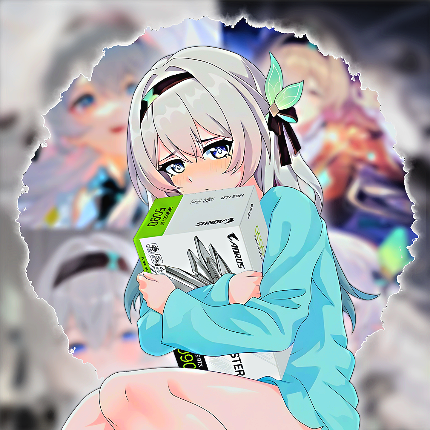 Gambar karakter Firefly dari Hst yang sedang memeluk box rtx 5090