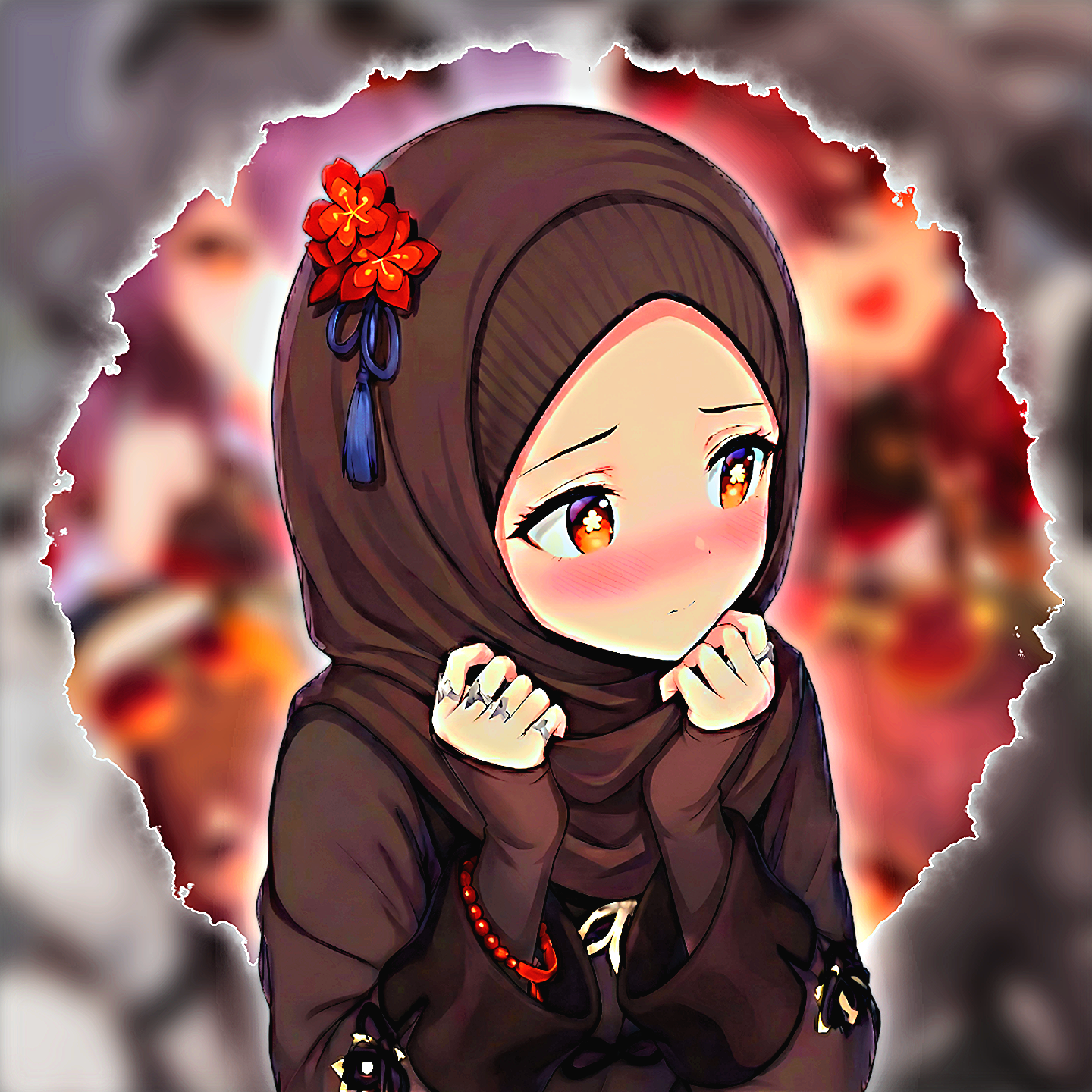 Gambar karakter Hu tao dari Genshin Impact dengan tema Islamic. bernuansa imut malu malu kucing cocok buat masuk my kisah