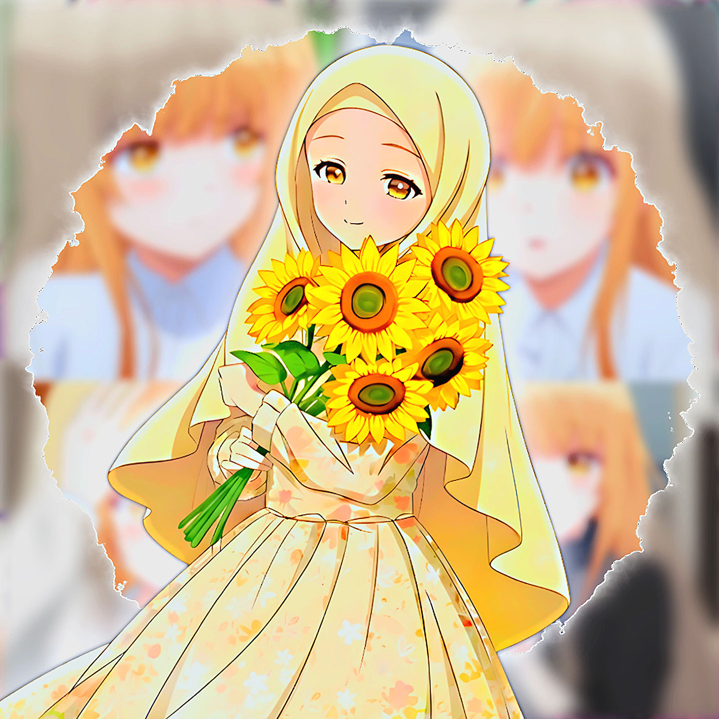 Gambar karakter Mahiru dari otonari No Tenshi dengan tema Islamic.